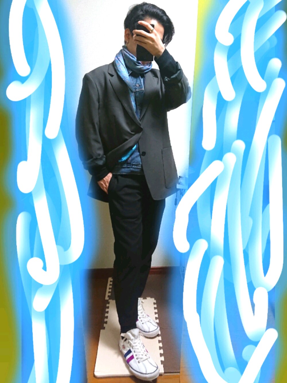 When I wear a thick outer wear, I feel so hot and irritated cz it's bulky if I take it off. Thus I chose the scarf, the tailored jacket, and the denim jacket so that I don't feel so hot and irritated 😜 My pics for the ppl with short height. Hope they'll enjoy my styles 😌 ゴツめのアウター着ると暑いし、脱ぐと荷物になっちゃうんですよね… なのでスカーフ、ジャケット、ジージャンを選び、あまり暑くならないようにしました😜 僕の写真は低身長向けなので、低身長の人達が楽しんでもらえると嬉しいです😌