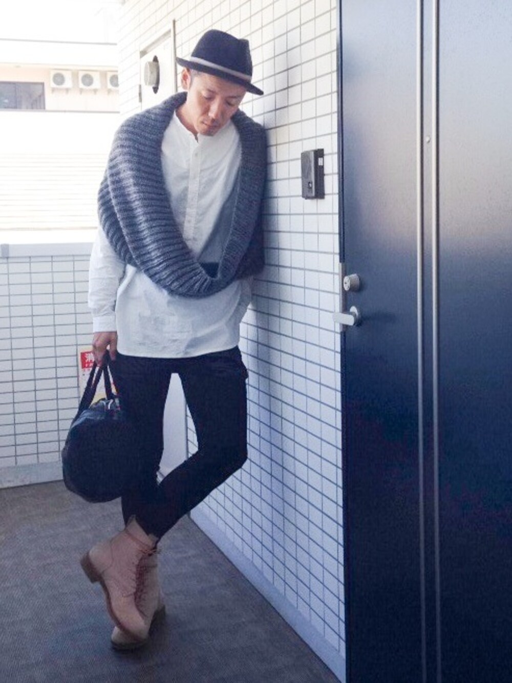 ブーツイン! 天気なのでヌメ革ブーツがやっと履ける スヌードで体温調節 今から梅田で買い物です〜^_^