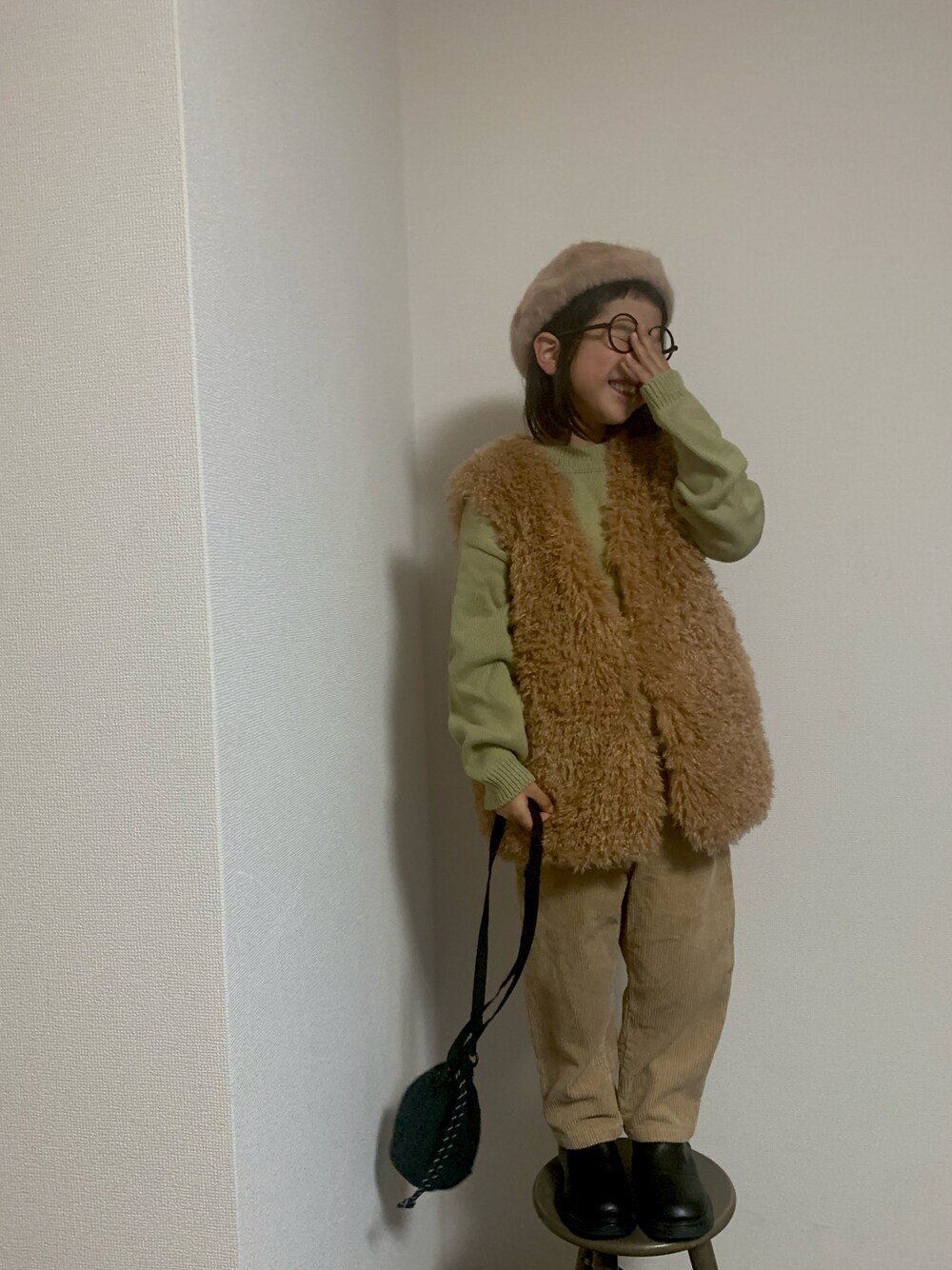 momono13のベスト「プードルファーベスト」を使ったコーディネート