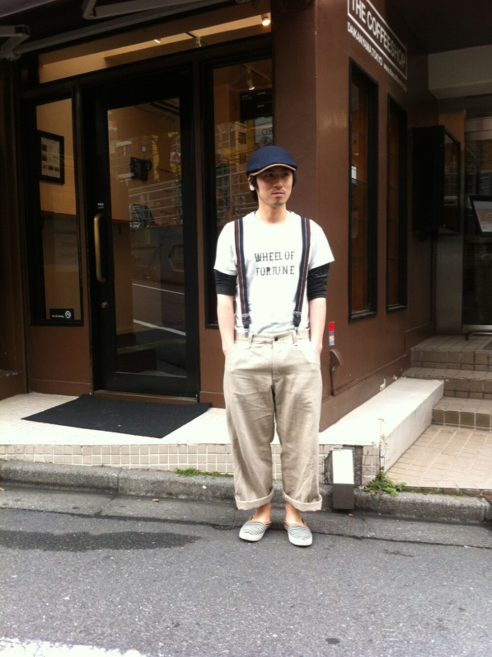 親父の箪笥にいい感じのサスペンダーがあったから。いい感じに拝借したよ。 サスペンダー 菊池武雄 パンツ WCM Tシャツ FUGAHUM 帽子 もらい物