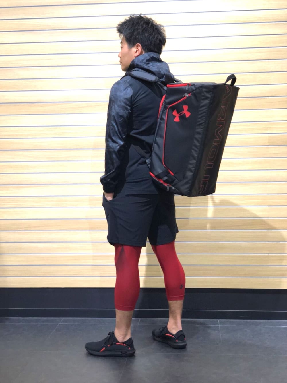 スポーツやジムへの行き来に最適! 赤黒コーデ。