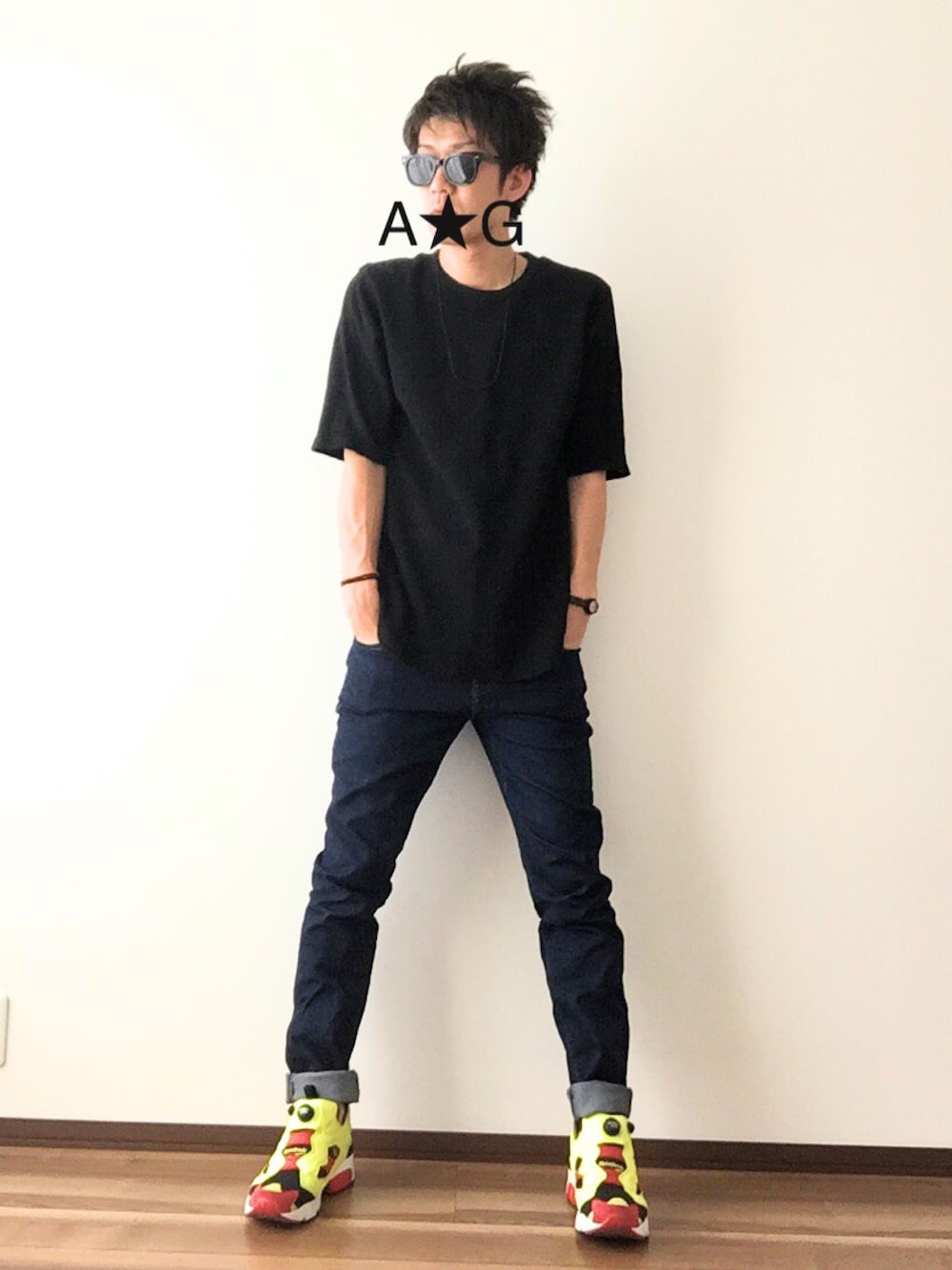 A☆Gのサングラス「WEGO/フラットレンズサングラス」を使ったコーディネート
