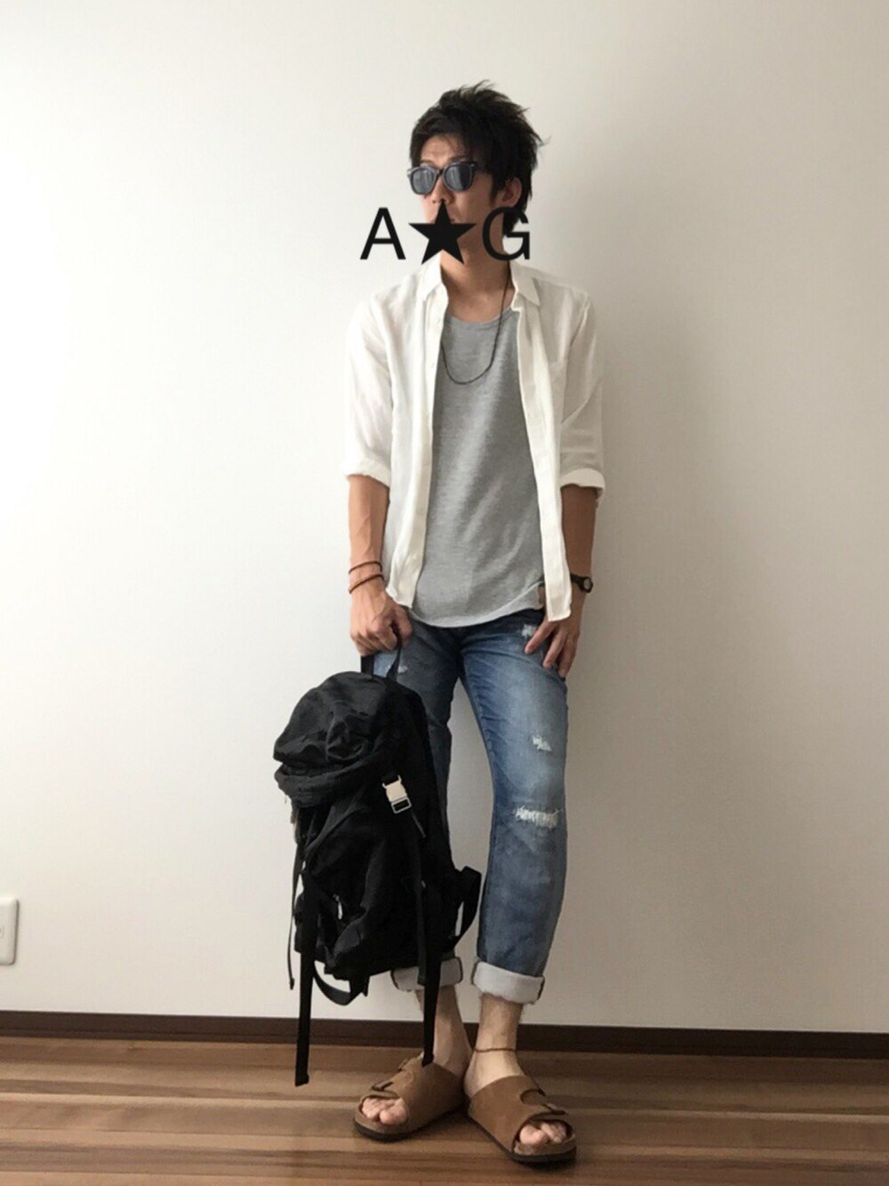 こんちはー┏○))ペコ 最近、娘がテレビ見ててコブクロが出てくると、 パパ!パパ! と言います(¬_¬)w 娘よ、、、間違いではないな、、、うんw さて、先日病気にて、血液、レントゲン、尿とフルセット検査しましたが、問題はないとのこと。 とりあえずまた薬もらって飲んでるけど、良くなるのか未知数( ̄Д ̄)ノw さてさて、コーデは、今回のセールで買ったサンダル登場ー( ´͈ ᗨ `͈ )◞♡⃛ あえてブラウンを買ったんやけど、デニムと相性抜群で使える☆ でも、サイズが小さかったのがかなり痛い(╥д╥`*)w ジャストなんだけど、L買えばよかった💦 今日は今年一番の真夏日らしいです(╥д╥`*) 休みだけど家にいようかなww 夏眠しますw いつも、いいね、コメント、セーブ、フォローあざます┏○))ペコ