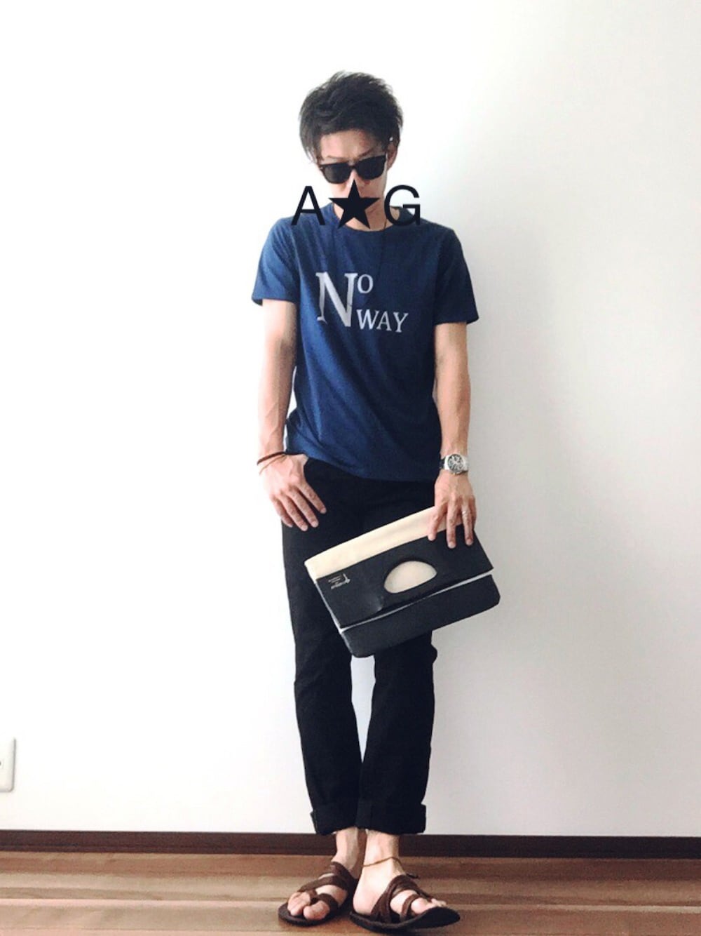 A☆Gのサングラス「WEGO/フラットレンズサングラス」を使ったコーディネート
