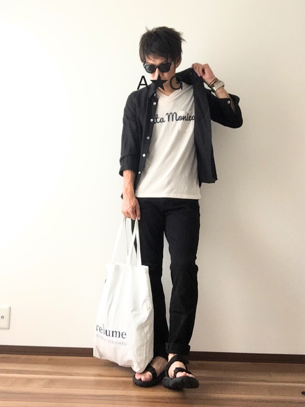 A☆Gのサングラス「WEGO/フラットレンズサングラス」を使ったコーディネート