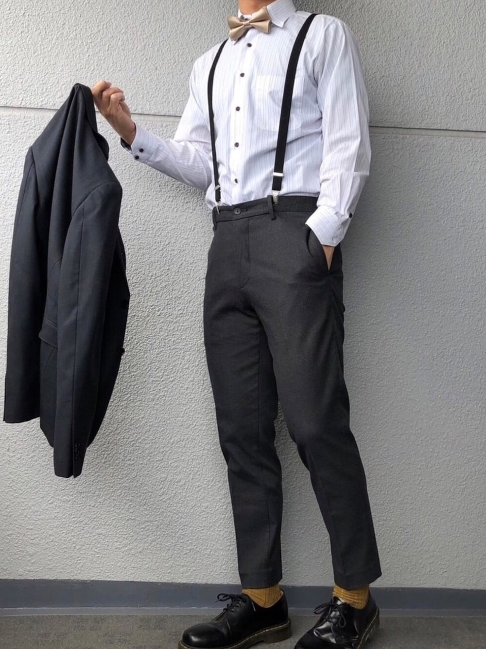 パーティコーデ! めちゃお気に入り✌️ 今日は卒業式ということで 午後からはこの格好です。 初サスペンダー付けたけど お洒落やねこれは🤤🤤 【today's code】 jacket S shirts S pants S shoes 7