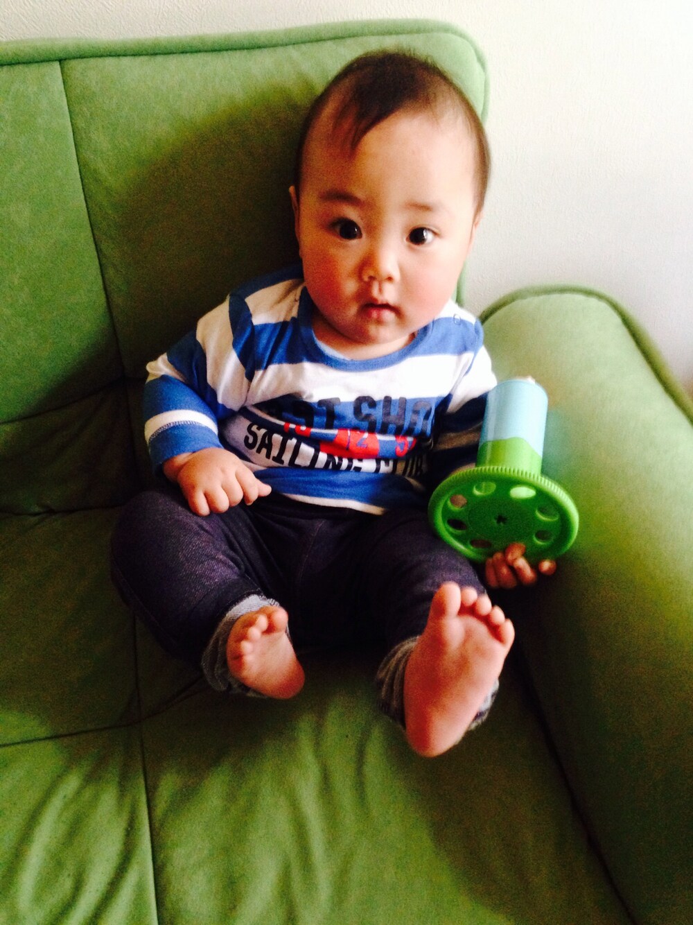 暖かくなってきたので 薄手のロンT着させてみました‼ ボーダー柄をついつい たくさん買ってしまう、、、 男の子ってボーダー以外 可愛い柄ってどんなんがあるのかなー?