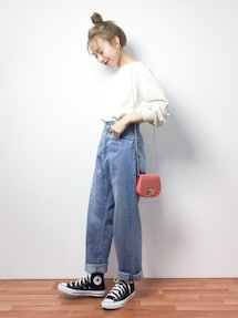 eicoのシャツ/ブラウス「ギンガムバルーンスリーブブラウス」を使ったコーディネート