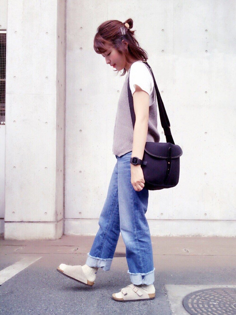 おはよう月曜日✨✨ 月曜日の朝なのにもうすでに疲れてます😲 カジュアルなコーデ♡ 今日も素敵な1日になりますように💫
