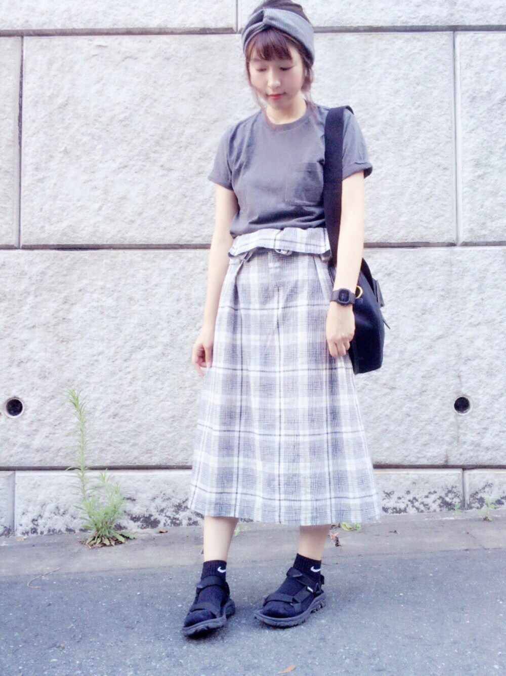 eicoのスカート「cdc 綿麻アソート おっきなチェック長めスカート」を使ったコーディネート