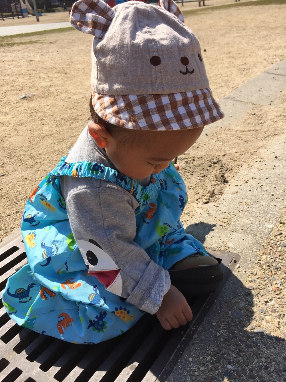 去年の帽子がちっちゃくて、頭に乗ってるだけです。笑