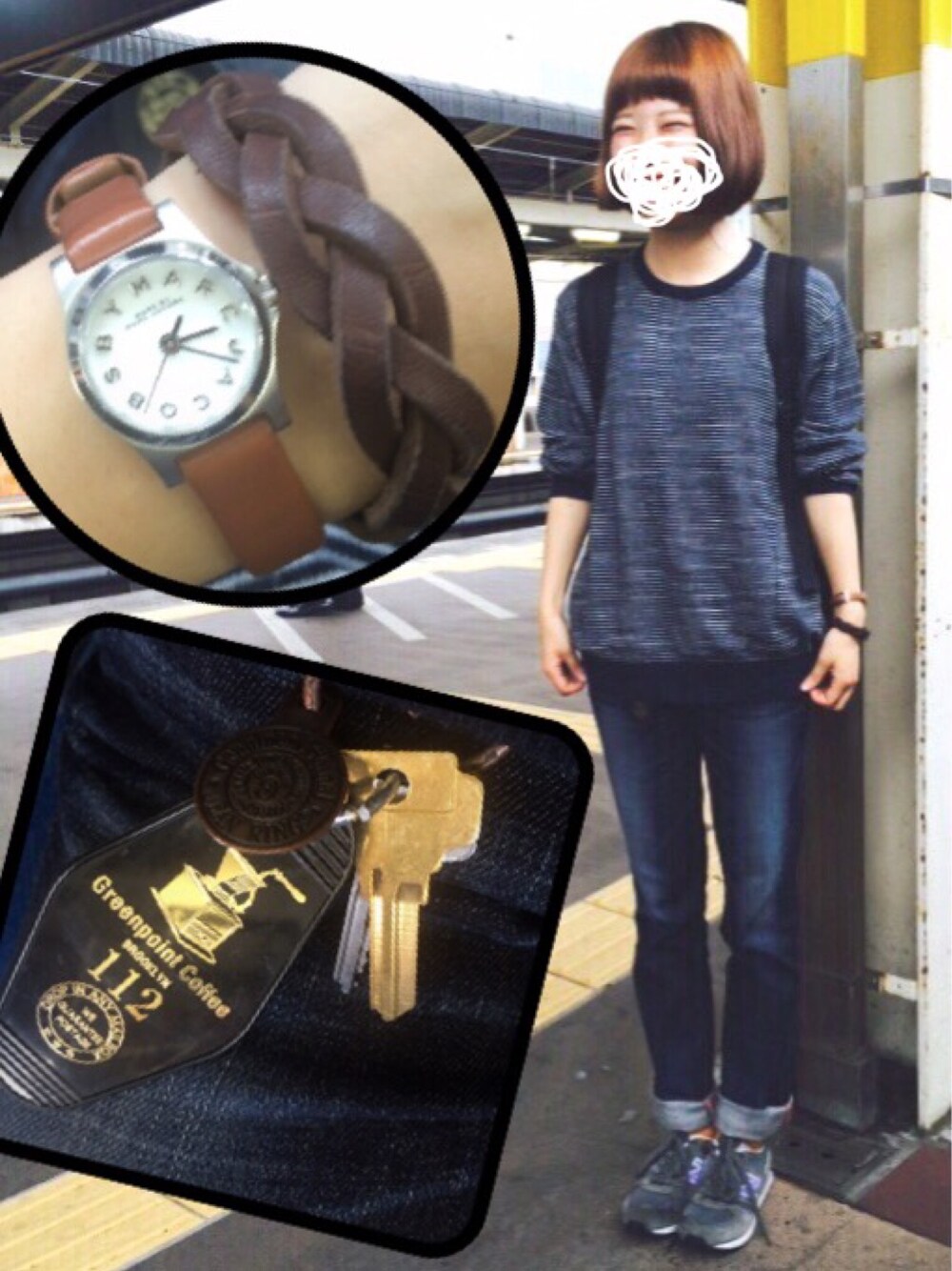 私の中の定番小物を取り入れたシンプルカジュアルコーデ。 男の子がLevi'sのジーンズにキーリングとかで鍵をぶら下げているのがすごくすきで、自分が履いた時はよくつけます☺︎ 腕にはほぼ毎日、時計とレザーブレスレットのセット! レザー小物にも惹かれることが多い気がします〜 やっぱり男の子になりたい、!
