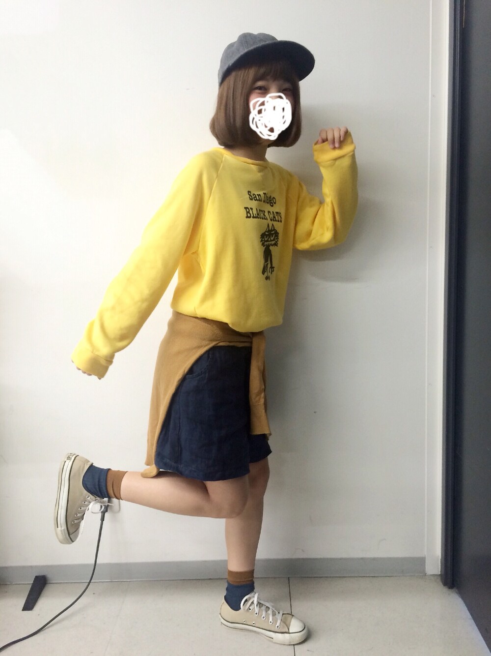 黄色のスエットは古着屋さんで800円で見つけました!🌟ラッキー ほどよく裏起毛であたたかいです( ´ ▽ ` ) 今日はのび太くんとわくわくさんが融合した感じのコーデです(笑) usa製のコンバースとMHL.のバックでしっかり感も忘れずに◎