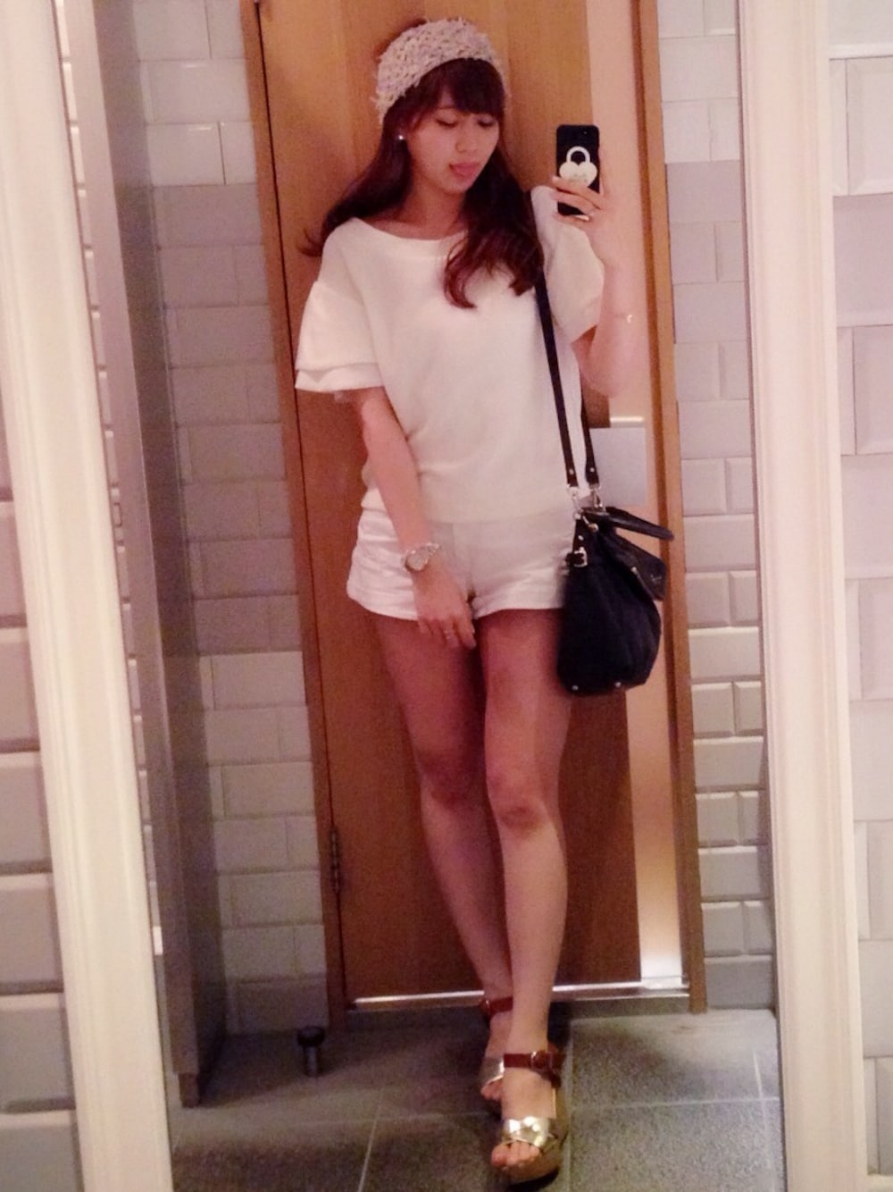 オールホワイトcode sandalのメタリックでワンポイント こういう時に合わせる長めのnecklaceが欲しいんだよねぇ*\(^o^)/* pants…COCO DEAL