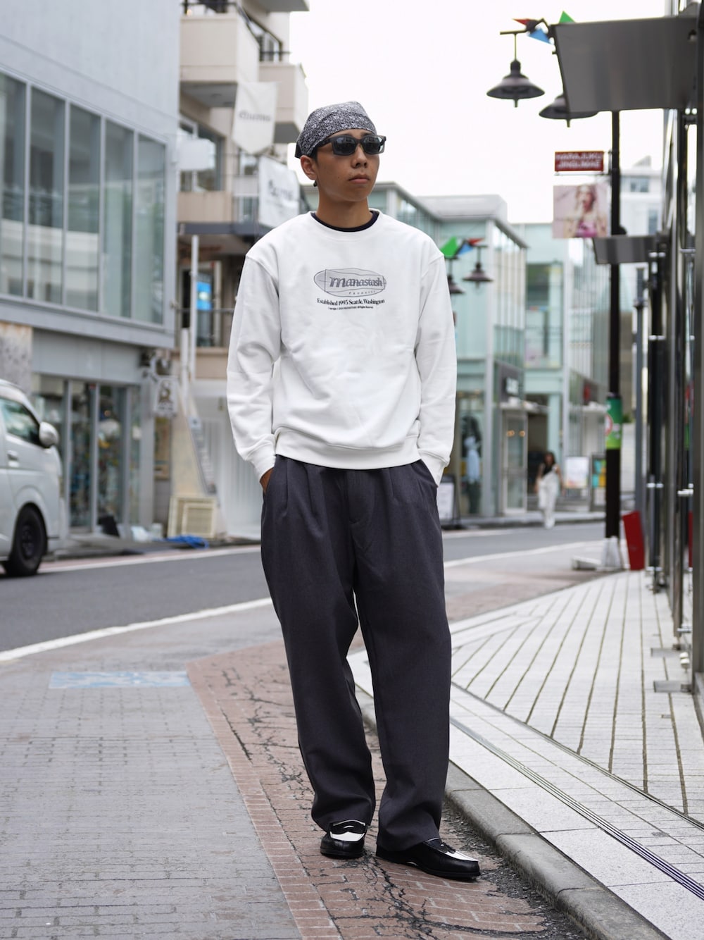 こんにちはmanastash 原宿店のえいたです。 最近やっと肌寒くなってきたので調子いいス ウェット紹介します! 今年は白系のスウェットでジャストサイズで着るのが中々おすすめです! カラーバリュエーションも3種類になるので是非一度原宿店で試着などしてみてください、お待ちしてます。 Headgear:バンダナ Tops: size L Pants: size L Shoes: kenford size 26