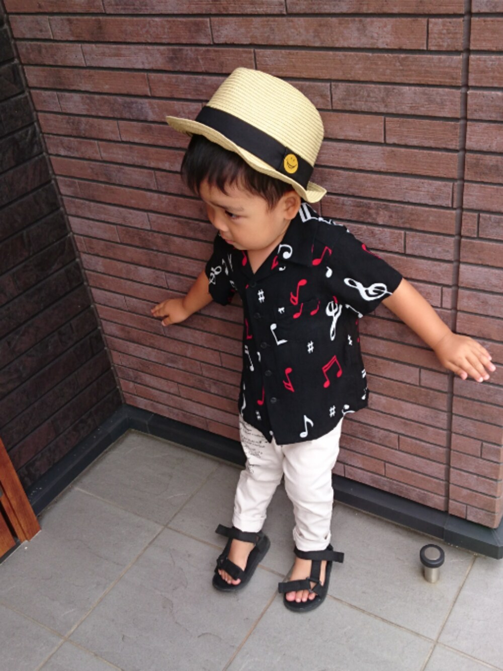 kids-eiteeのハット「無地ペーパーハット」を使ったコーディネート