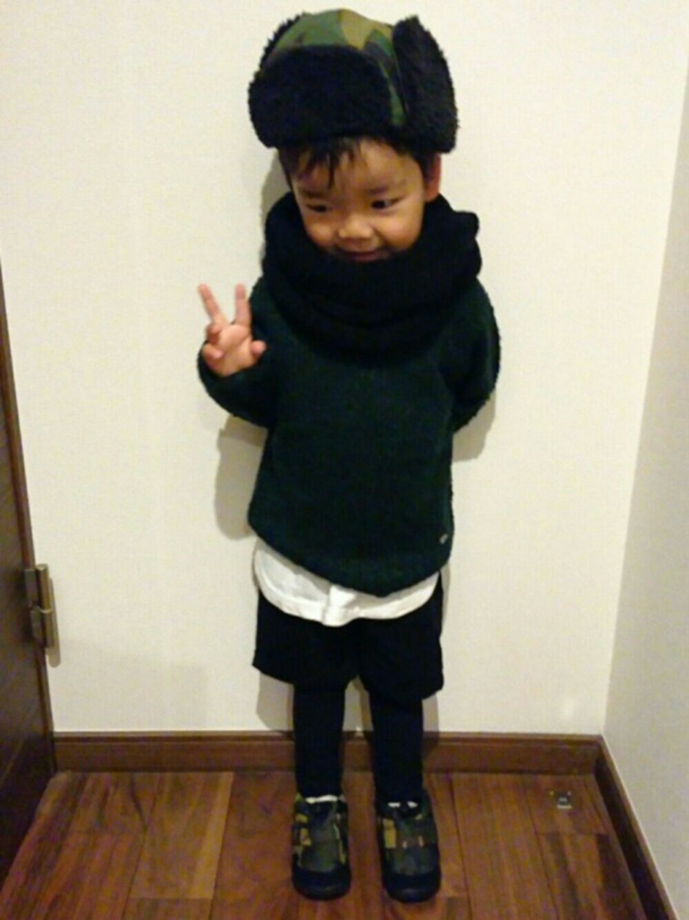 見てくださりありがとうございます☺ カモフラ×ぬくぬくコーデ🎵