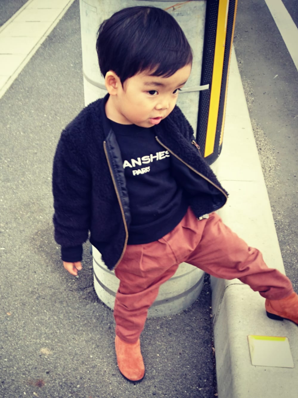 見てくださりありがとうございます☺ 今日の靴は息子セレクトで、 なぜだか パンツとブーツが同系色に…😅 脚長効果ということで🎵(笑)