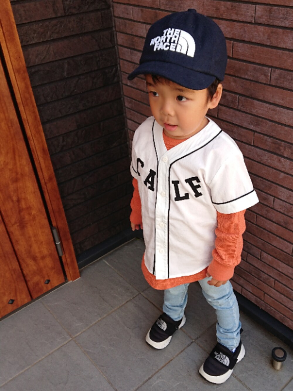 kids-eiteeのキャップ「ザ・ノース・フェイス キッズキャップ / TNF ロゴフランネルキャップ」を使ったコーディネート