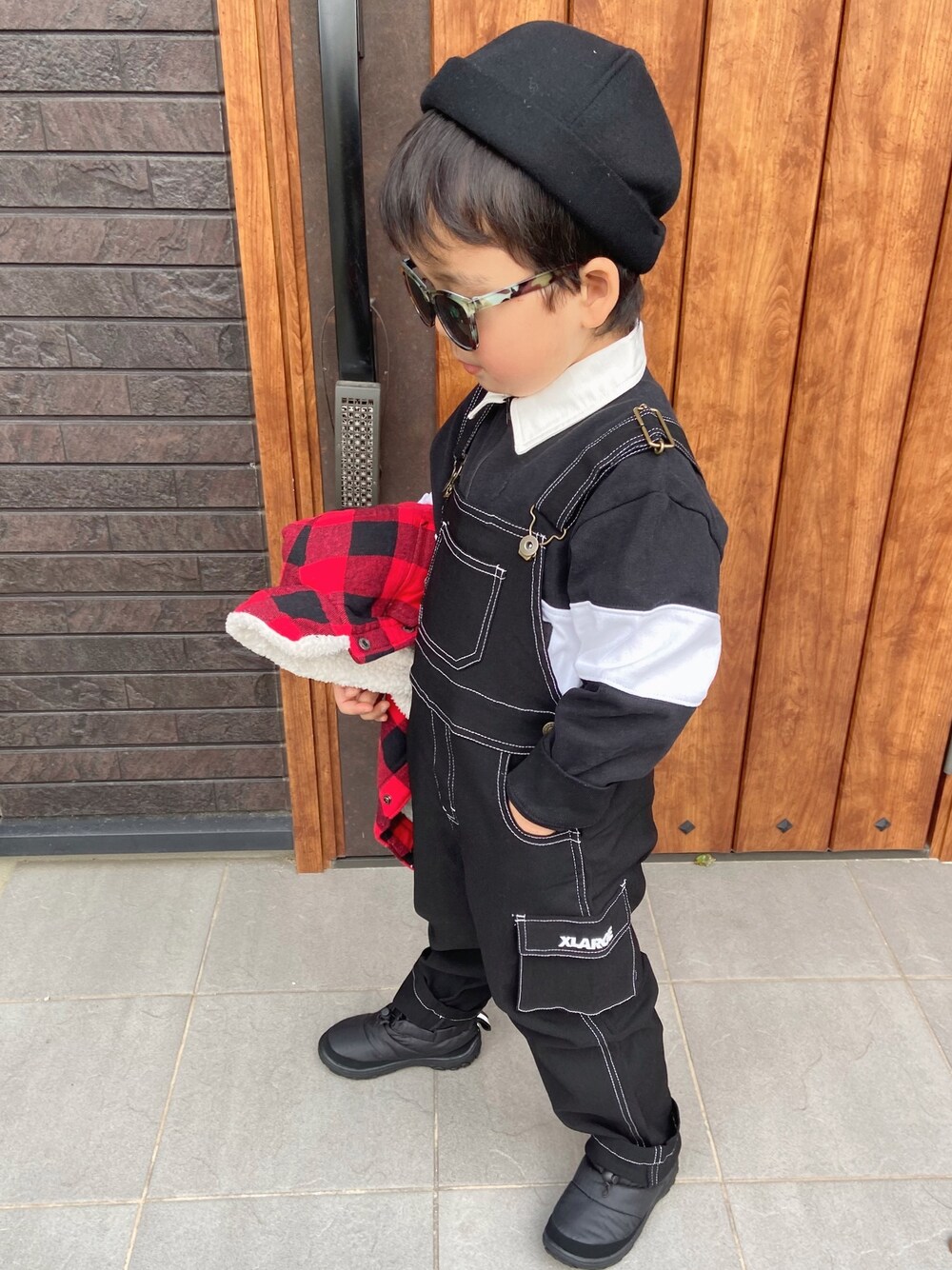 見てくださりありがとうございます😊 息子コーデ ブラック✖️ブロックチェックで