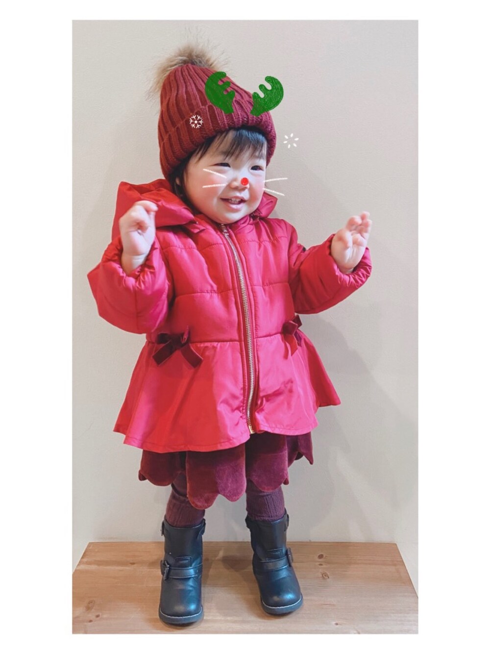 見てくださりありがとうございます😊 娘コーデ クリスマスカラー コーデで🎄💝 よい1日を〜🎁