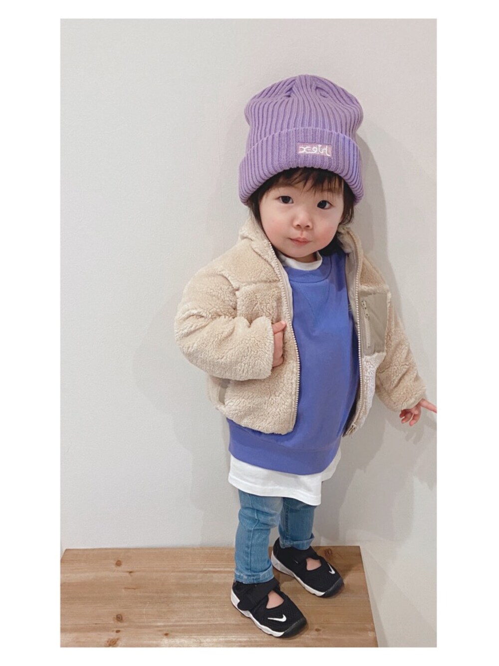 見てくださりありがとうございます☺︎ 娘コーデ #冬アウター着回しチャレンジ part.2 オーバーサイズトップスで合わせました💡