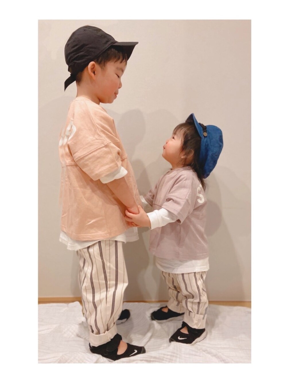 見てくださりありがとうございます😊 いいね👍お気に入りに登録うれしいです♡ wear選抜 ラストは兄妹リンクコーデで♡ デビロックのTシャツ ✖️ストライプ柄シェフパンツ 大好きな組み合わせになりました♡