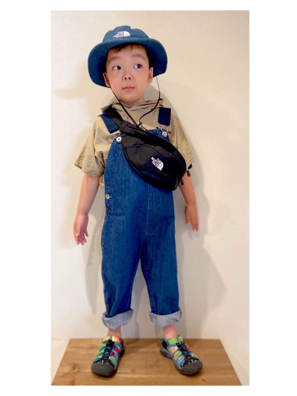 kids-eiteeのハット「ザ ノース フェイス THE NORTH FACE K DENIM MESH HAT」を使ったコーディネート