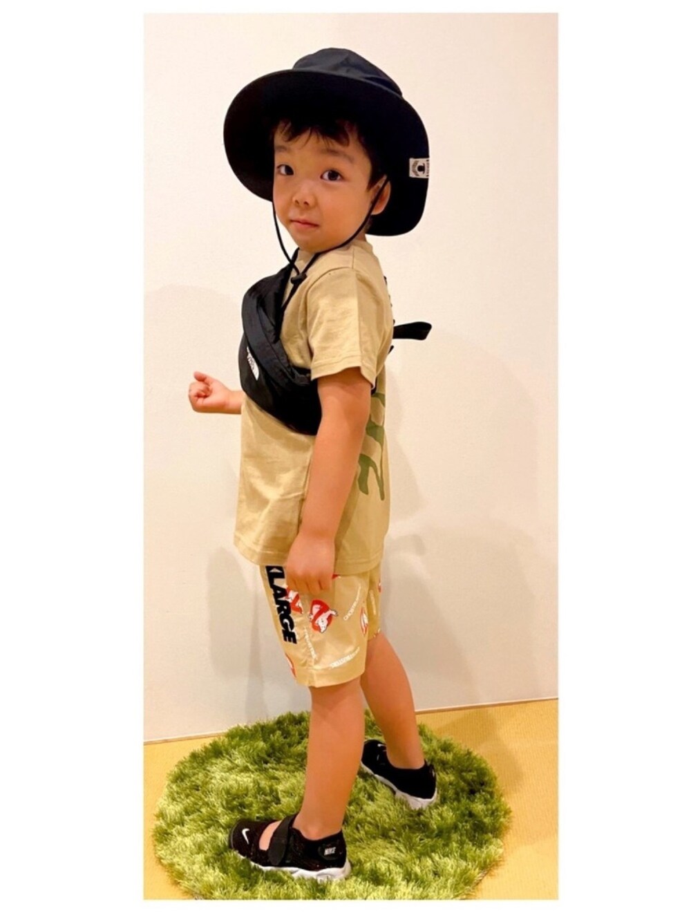 見てくださりありがとうございます😊 いいね👍お気に入りに登録嬉しいです😊 息子コーデ 謎のドヤ顔ガッツポーズver. 生意気ですみません😂💦 ベージュワントーンで 小物ブラック❗️ 母の好きな色組み合わせです笑