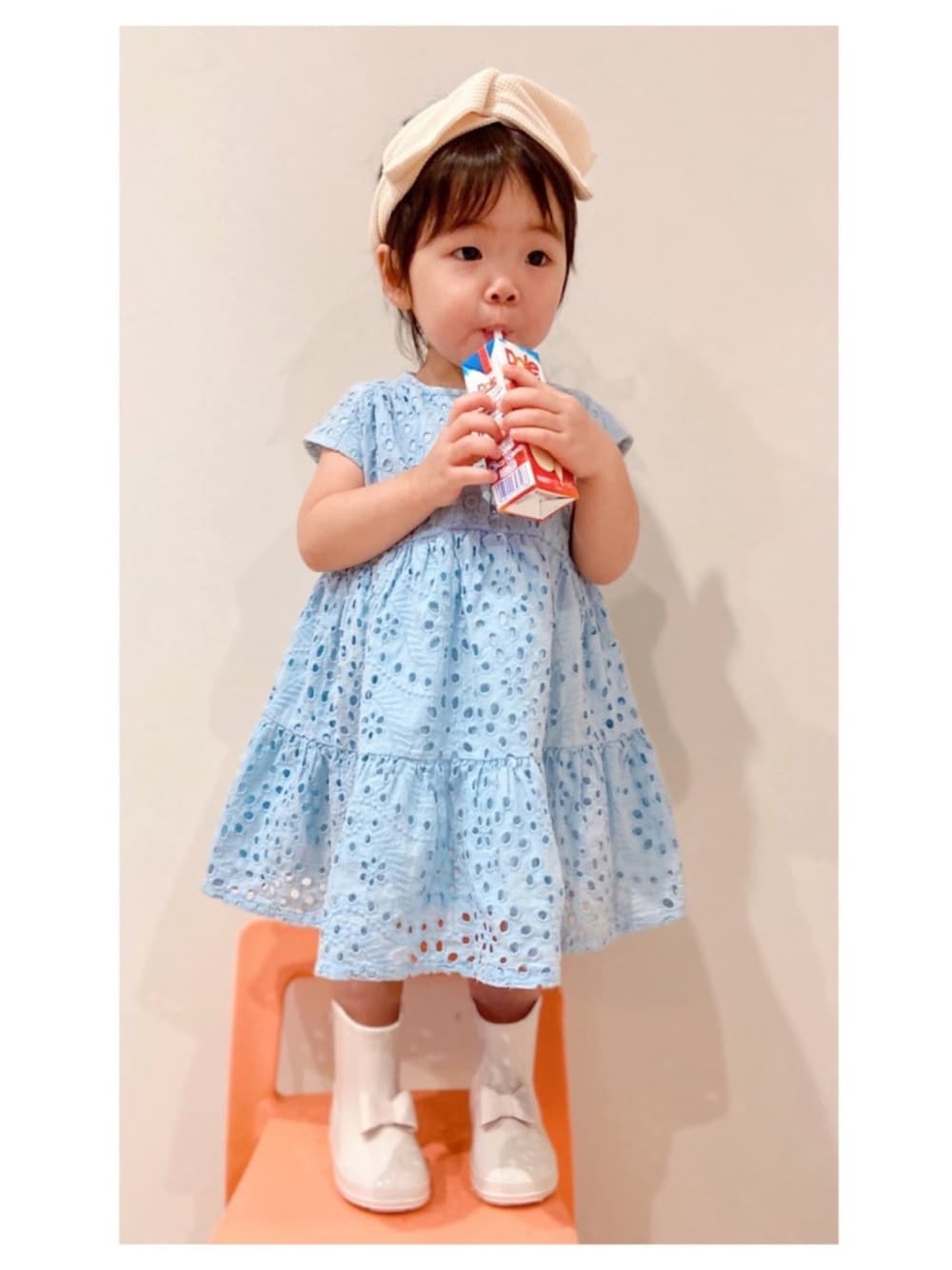 kids-eiteeのヘアバンド「ビッグリボンヘアターバン」を使ったコーディネート
