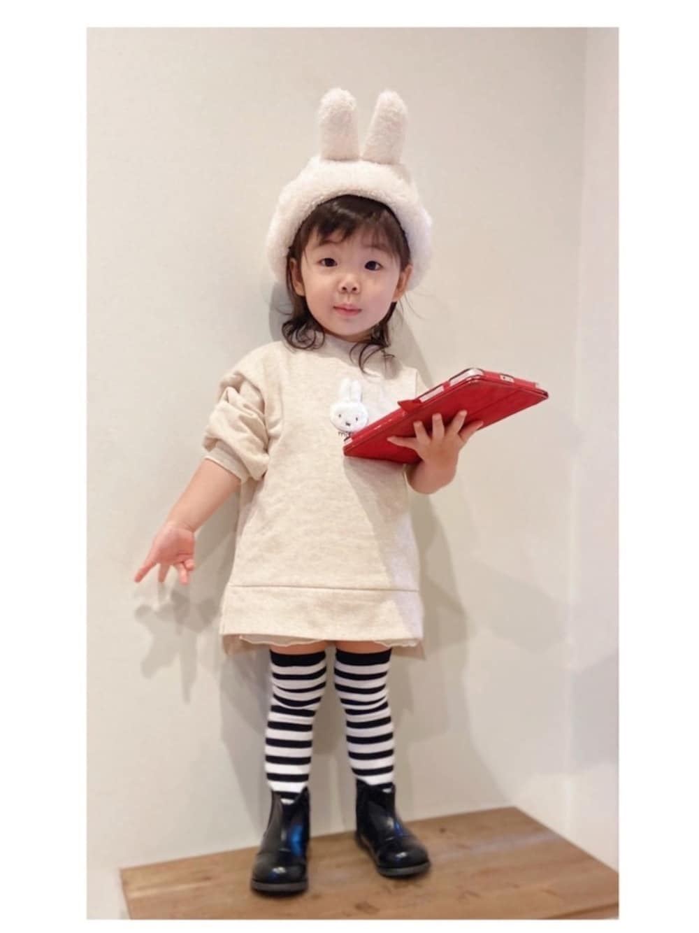 見てくださりありがとうございます(๑・̑◡・̑๑) いいね👍、お気に入りに登録➕ フォルダ仲間入りうれしいです(๑˃̵ᴗ˂̵)✨ 娘コーデ(⁎⁍̴̆Ɛ⁍̴̆⁎) ミッフィーのベレー 今日は色違いの白で♡ やっぱミッフィーは白ですね…🤤