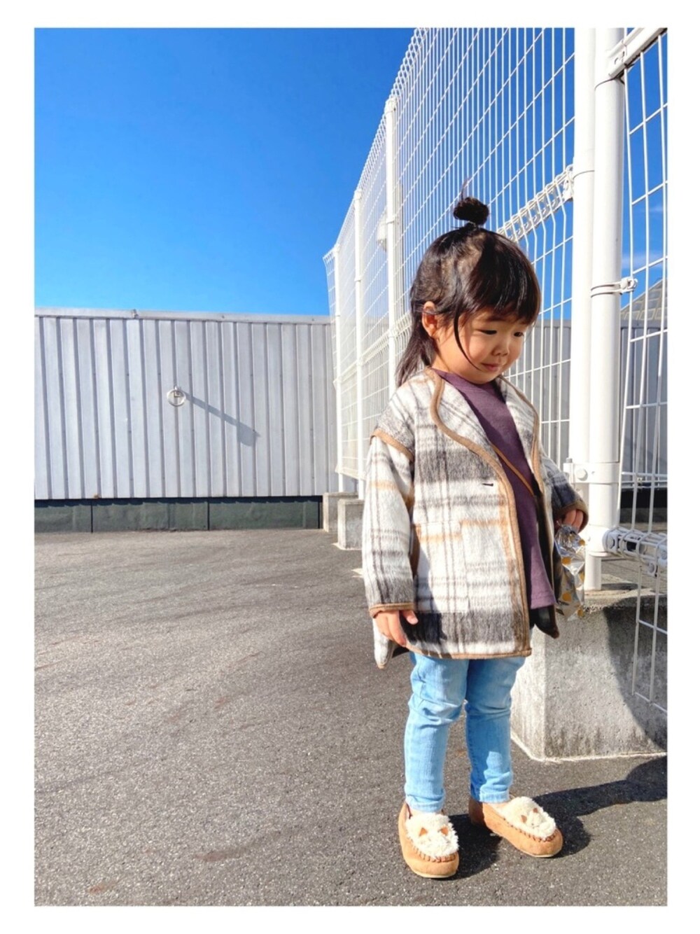 kids-eiteeのダウンジャケット/コート「チェックシャギーパイピングコート」を使ったコーディネート