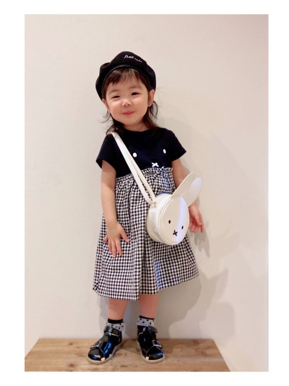見てくださりありがとうございます(๑・̑◡・̑๑) いいね👍、お気に入りに登録➕ フォルダ仲間入りうれしいです(๑˃̵ᴗ˂̵)✨ 娘コーデ♫ petit main × miffy のコラボ♡ 2パターン目です😅💦 今日はモノトーンで♡