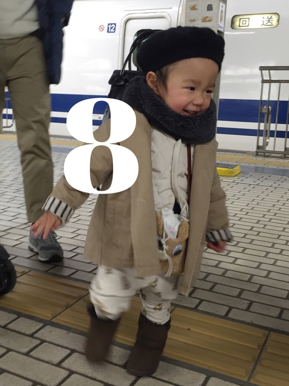 お正月🎍 新幹線に乗っておじいちゃんおばあちゃんに会いに来たよ〜👦♫ おnewのキツネパンツがおきにいり❤️😊 ぬくぬくコーデ❄️