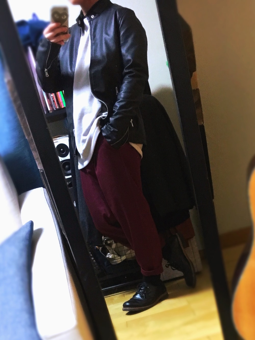 友人から貰ったライダースジャケット!!! 使いやすいしめちゃくちゃハマってしまった…😄 カラーパンツも個人的なブームです笑