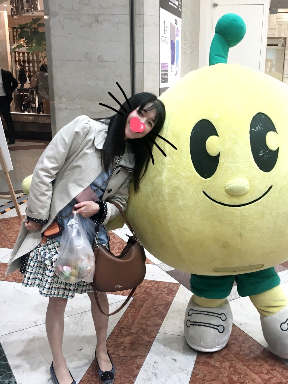 お買い物途中なので、ビニール袋を持ってます。悪しからず。 中身は、ナメコとトマトです。福島物産展にて。
