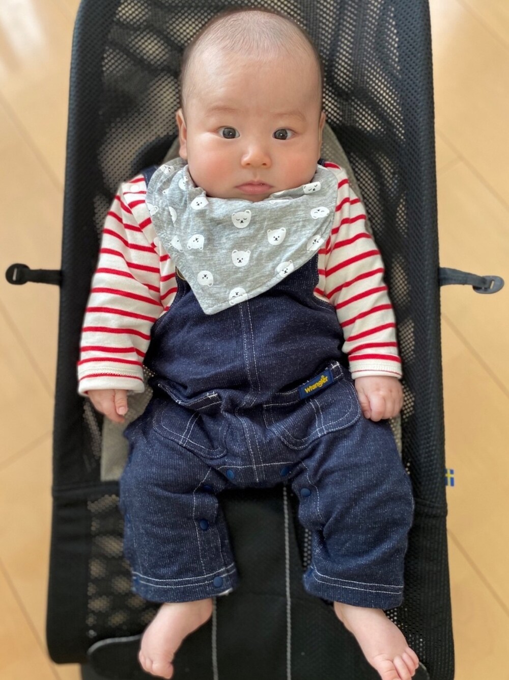 今日で3ヶ月♡ ロンパースはサロペット風♡