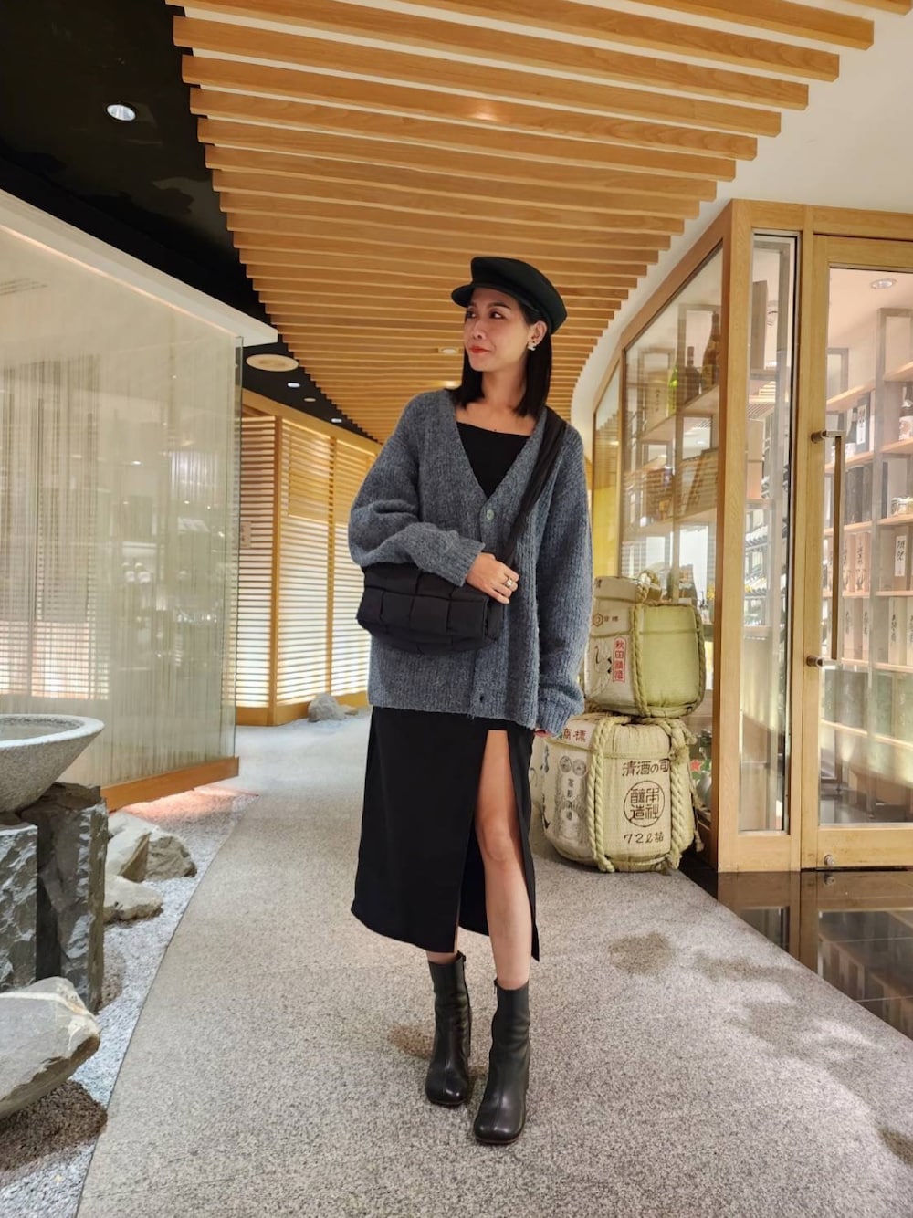 Mirandaのカーディガン/ボレロ「mix knit Vneck cardigan/ミックスニットVネックカーディガン」を使ったコーディネート