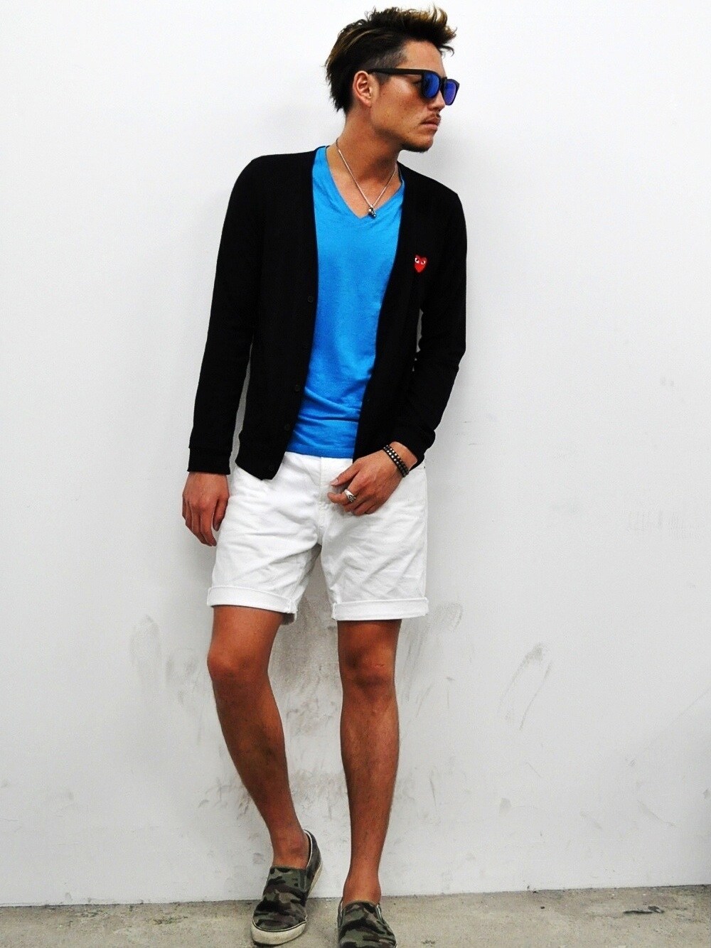 いつも閲覧ありがとうございます。 青Tコーデって事で、季節柄、白のボトムと、ミラーサングラスはTEEに合わせて青をチョイスしました。 白のボトムは、UNIQLOで買ったものをハサミで切って裾を曲げて使ってます。ある程度ゆったりなサイズ感でショートにするのが好きです。 save/comment/follow嬉しいです☻