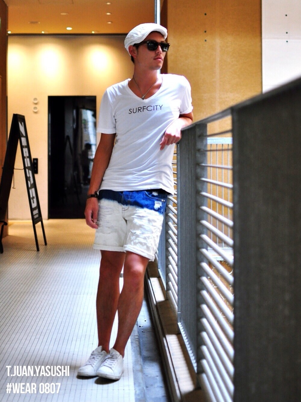 T.JUAN.YASUSHIのデニムパンツ「グラデーションハーパン」を使ったコーディネート