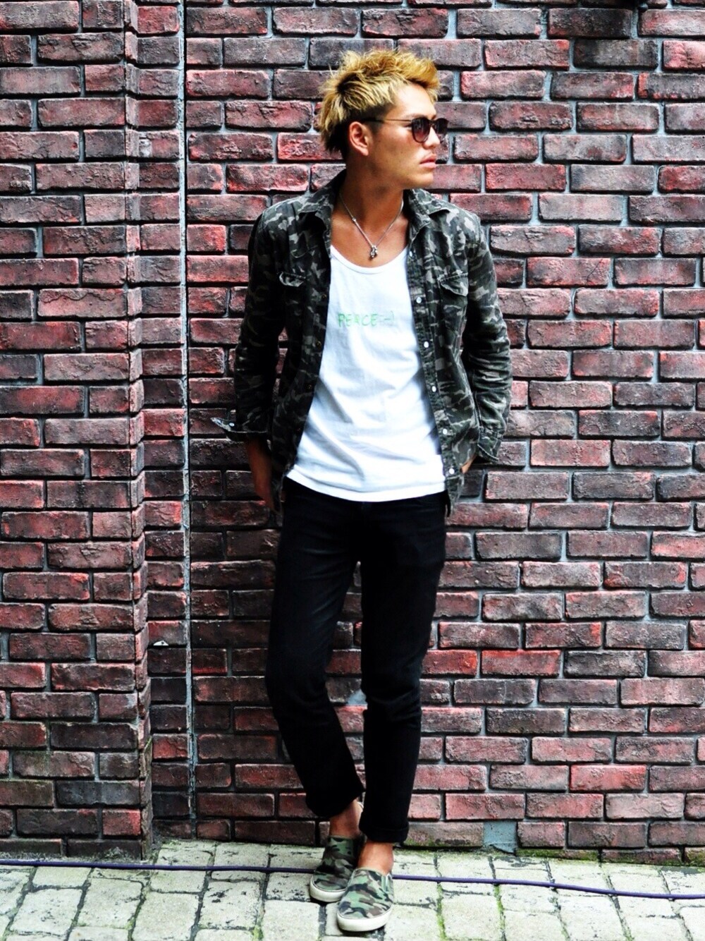 T.JUAN.YASUSHIのタンクトップ「PEACE TANKTOP」を使ったコーディネート