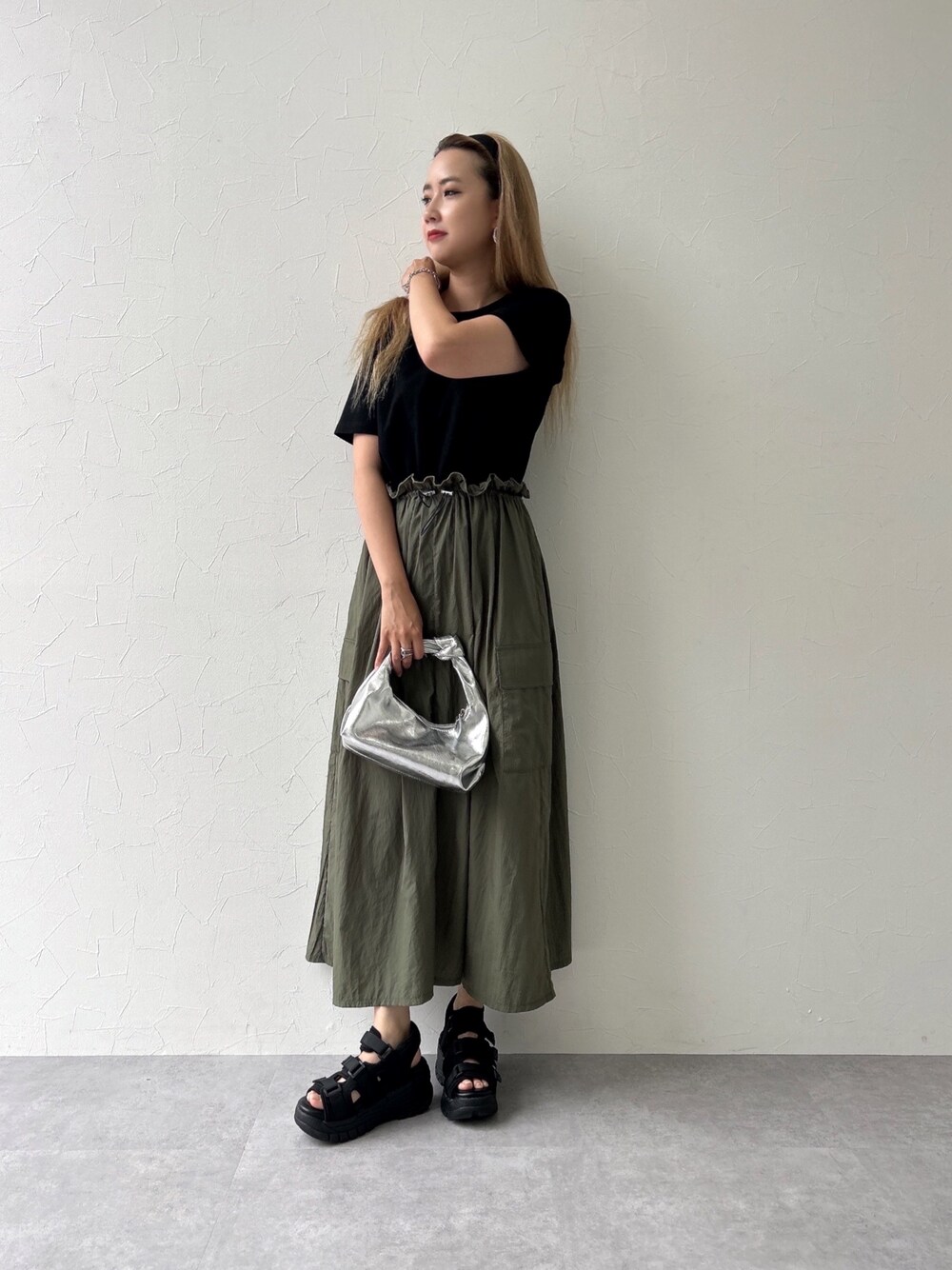 カットソーとナイロンスカートのドッキングワンピース👗 異素材組み合わせなので一枚で着映えします🤍🖤