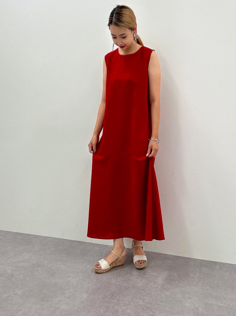 真っ赤のワンピースがこの夏映える❤️🤍 足元は柔らかく白のサンダルで合わせました👡✨