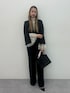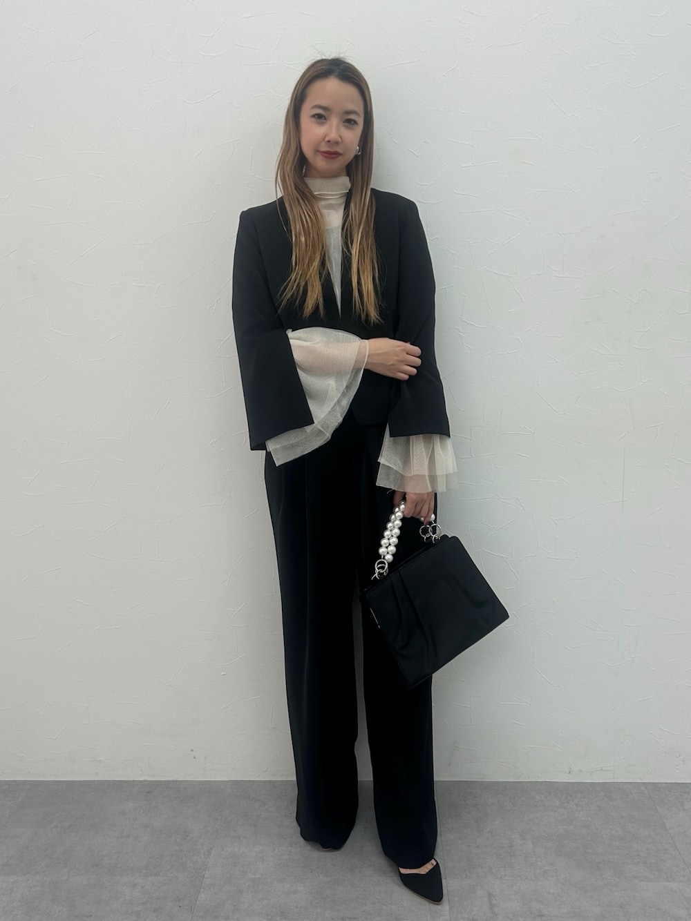 ◼︎157㎝ / 黒 / Mサイズ着用 袖スリットなので、袖にデザインのあるブラウスととっても合います🤍ショート丈デザインでワイドパンツとの絶妙なバランスが 最高に可愛い!! ストレッチ生地で着心地も最高に楽😭💗 わたしは入学、卒業式の日に着用します🕊️