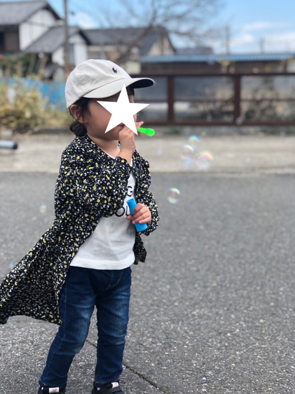 またシャボン玉してる(笑) 逆にシャボン玉してる時じゃないと 写真を撮らせてもらえない😂 動く動く😂 ちなみにこの花柄ワンピは 母もお揃い買っちゃった♡ 同じように羽織で着る予定✌️