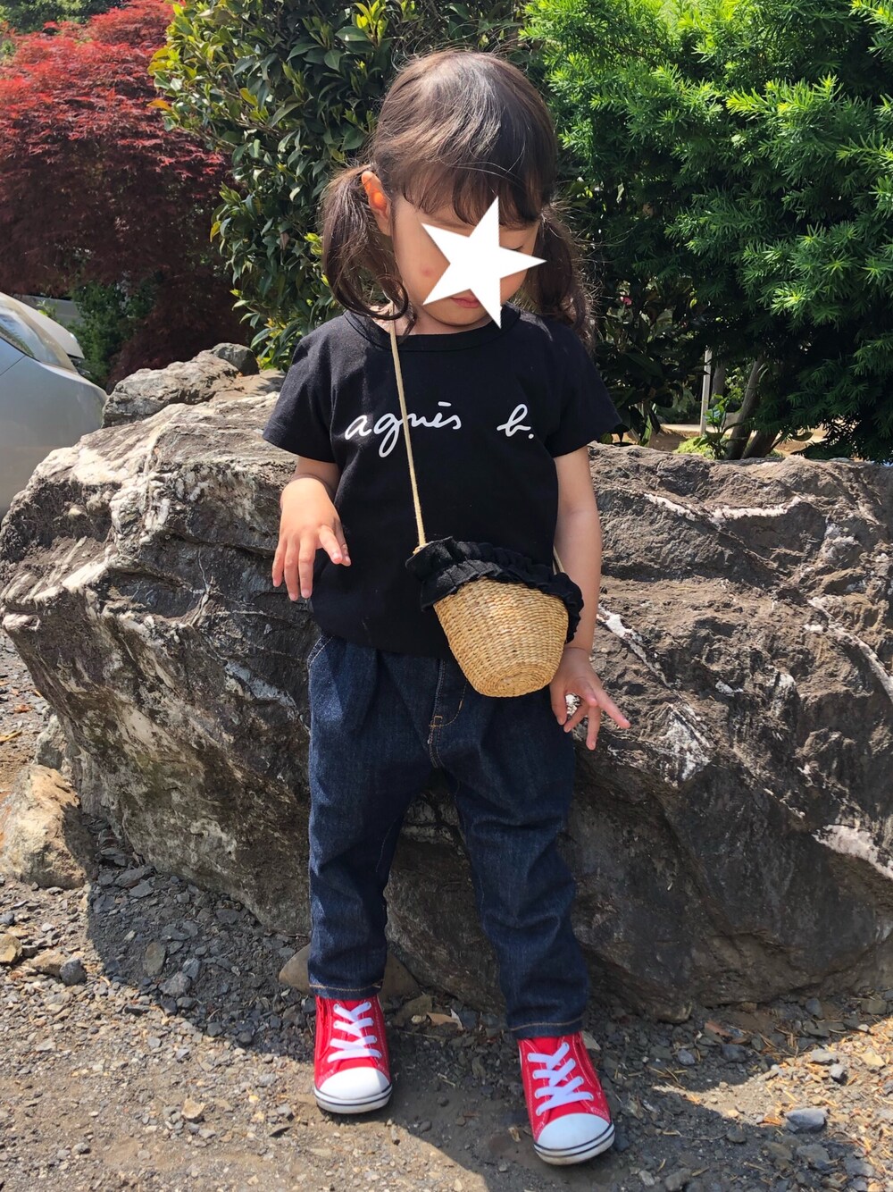 今日は娘2人と私 3人でアニエスTお揃い🖤🖤🖤 カバンを掛けるのも 嫌がらなくなってくれて嬉しい🥰 中身はお友達にあげる飴ちゃん🍬