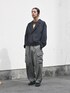 ライダースとダブルのジャケットを 合体させたようなtopsに ポリウレタン素材のカーゴパンツを 合わせてみました。 topsと靴はフォーマルに インナーとbottomは少しカジュアルに してみました。パンツの色が絶妙です。