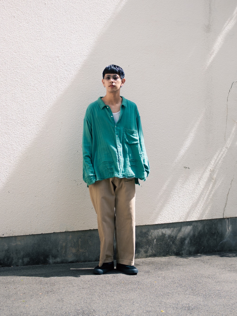 ぱっと見はノーマルなチノパンですが 実はポケットが10個付いている 少し変わったチノパンです topsはancellmのガーゼシャツになります〜 Instagram→@runningokako