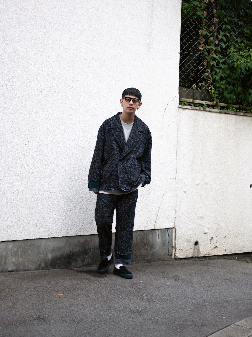 かっちりセットアップでございます 裾がフェイクレイヤードになってたりと カジュアルダウンされてて 着やすいです