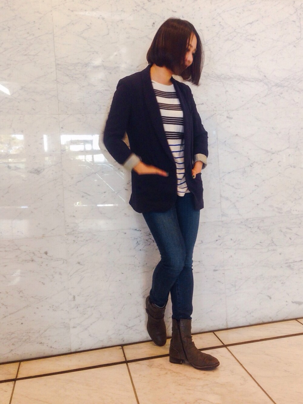 EKKAのテーラードジャケット「Honey finished light geogette」を使ったコーディネート